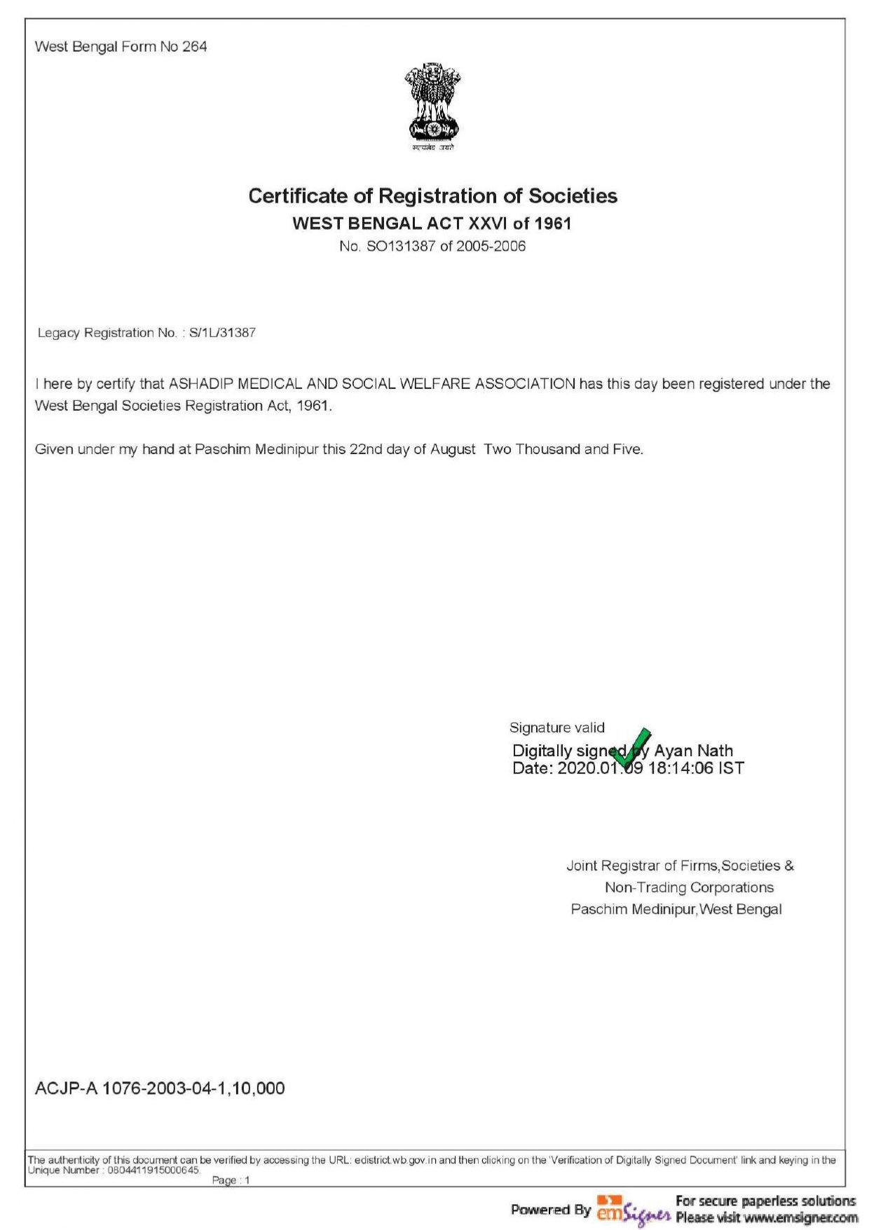 REGISTRATION CERTIFICATE OF N.G.O |