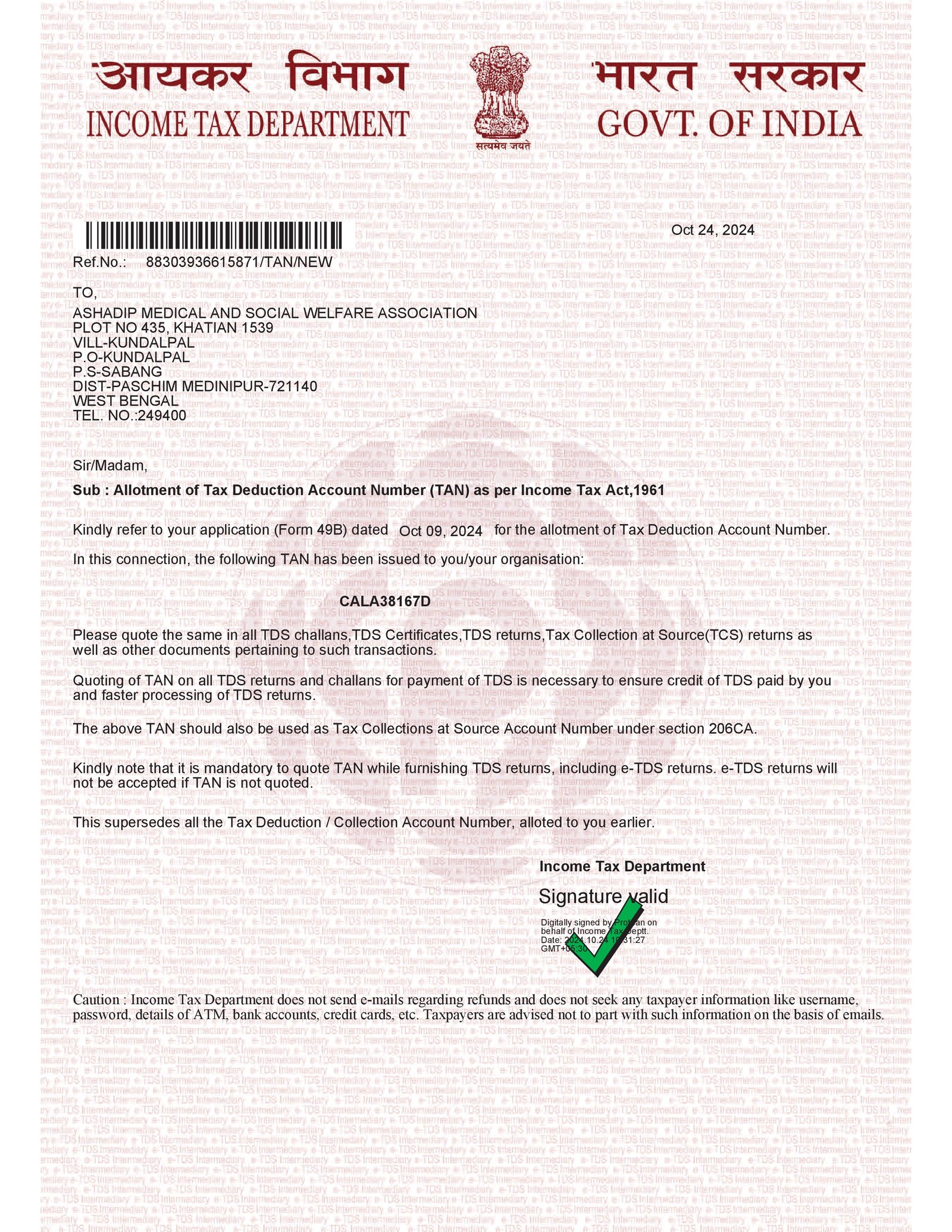 Tan Certificate |